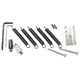 ABM Katana 5400c Fine Tuner Tremolo; Locking (FR-Style) Tremolo for Electric Guitar; The body is milled from solid bell brass for a strong fundamental tone with many overtones; can be adjusted to any neck radius thanks to the independent saddle height adjustment; Replaceable blade edges made of spring steel; Saddles: Brass; Block Material: Steel; Included: Tremolo Arm, 5 tremolo springs, spring claw with screws, mounting bolts/sleeves; Total String Spacing: 53,5 mm (2,11"); Single String Spacing: 10,7 mm (0,42"), block dimensions: (H x W) 37 x 68,5 mm (1,46 x 2,7") mm; Total Post/Bore Spacing: 74 mm (2,91"); Finish: Chrome; Made in Germany; Note: a locking nut is not included