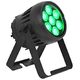 Eurolite AKKU IP PAR 7 QCL CRMX MK2; IP65 battery-powered spotlight with RGBW LEDs, CRMX, frost filters, and IR remote control; Silent operation; Controllable via standalone mode; Master/Slave function; IR remote control; DMX; W-DMX by Wireless Solution; CRMX by LumenRadio; RDM; Integrated wireless receiver for CRMX operation; Operating time up to 9 hours depending on the program used; 7 powerful 8 W high-power 4-in-1 QCL RGBW LEDs (homogeneous color mixing); Two additional frost filters for a homogeneous and soft light; Emergency lighting function in the event of a power failure; Continuous color mixing, adjustable color change, adjustable color fade; Electronic dimmer, dimmer speed (step response) with adjustable response; White balance; Energy saving mode; Strobe effect; 36 integrated show programs; Direct color selection for 15 preset colors 3 buttons on the remote control for saving your own settings; With a beam angle of 6°; Flicker-free; With double bracket; OLED display; Mains input and output for easy connection of up to 8 devices; IP65 suitable for outdoor use; With pressure equalization membrane; Device cooling is via passive convection cooling; With a KENSINGTON LOCK anti-theft device; Possible uses: Upright; flying; on a tripod; Display of the remaining battery life for the current setting; Charge level indicator; Power supply: 100-240 V AC, 50/60 Hz; Protection type: IP65; Protection class: SK I; Battery: Lithium Ion Battery Pack / 202Wh; Power connection: Power Twist TR1 In / Out; DMX channels: 3, 4, 6, 8, 11; DMX connection: XLR 3-pin IP version In / Out; Dimensions W x H x Ø: 23.4 x 28 x 17.0 cm; Weight: 5.3 kg; Scope of delivery: 1 x device, 1 x operating instructions, 1 x power cable, 1 x remote control, 1 x battery, 2 x frost filters, 2 x knurled screws, 1 x declaration of conformity, 2 x mounting brackets