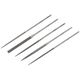 JGP Japanese Guitar Parts Precision Needle File 5-pc Set; 5-piece precision file set, consisting of 5 high-quality files from the Japanese manufacturer UO-CHIKYU; perfect for (re)processing fine details of shells, wood, plastic and some metals; each file has a total length of 200mm and handle diameter of 3.9mm; shape and dimensions see picture (All dimensions are in mm unless otherwise specified); Made in Japan