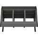 Zaor Maestro 36 All Black; professional studio table; acoustically optimized design; 3 x 12 U rack units; additional 3 x 6 U rack units on bottom; Dual cable path to separate audio and power cables; equipped with VMT absorber boards from Vicoustic on rear; soft armrest; lowered screen and speaker plane behind racks; made of MDF and solid wood; colour: All Black; weight: 74 kg